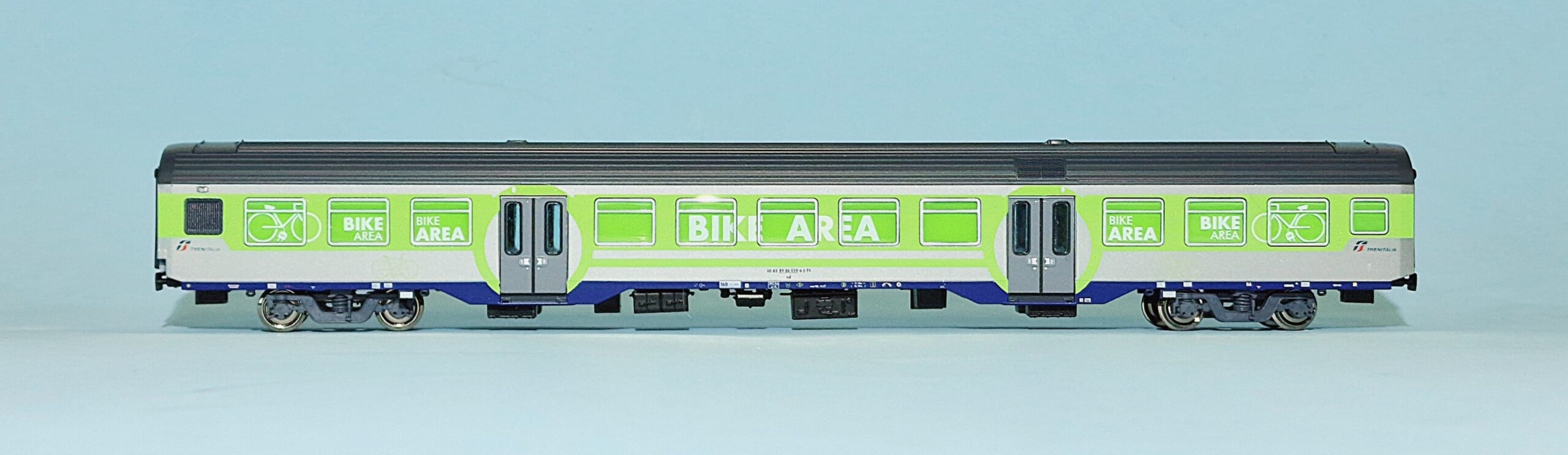 Carrozza MDVC delle FS nella livrea “BIKE AREA” per trasporto biciclette.